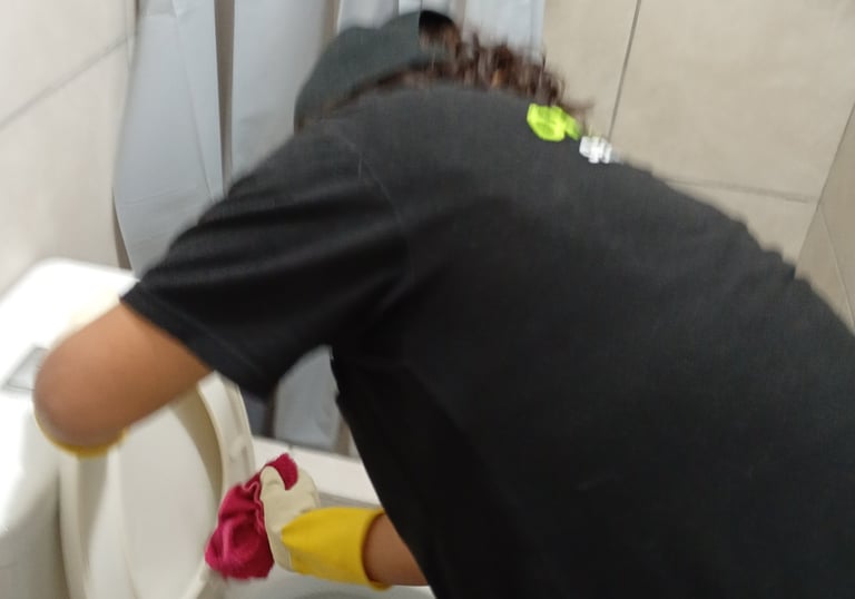 Desocupamos y ordenamos el espacio, luego aplicamos los productos de limpieza en las superficies de arriba hacia abajo, comenzando por el espejo, lavabo, ducha, grifería y dejando actuar el desinfectante en el inodoro. Frotamos con cepillos o esponjas todas las superficies, y enjuagamos con agua y finalmente, secamos y pulimos para un acabado limpio y reluciente.