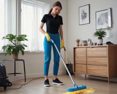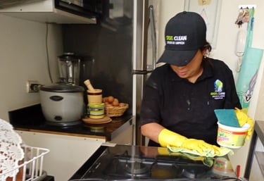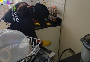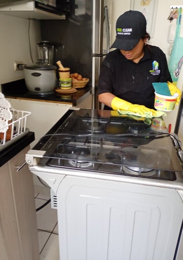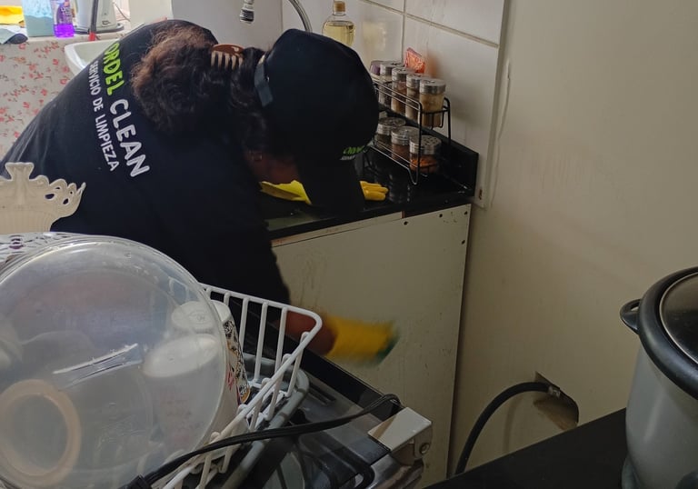 Realizamos una limpieza profunda, que es básicamente una limpieza exhaustiva y completa en todas las superficies y rincones de un hogar, incluyendo áreas de difícil acceso como detrás de los muebles, dentro y superficie de los electrodomésticos y en armarios.