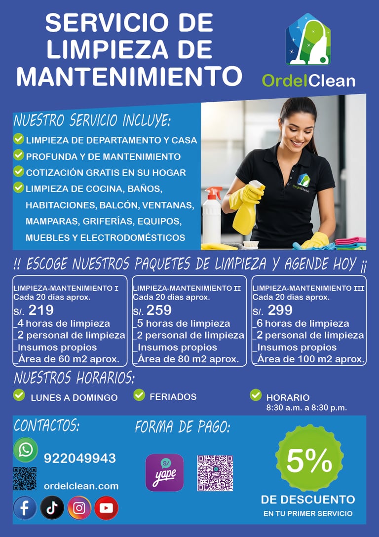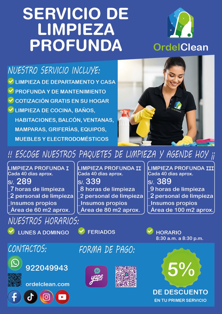 Sí, limpiamos a profundidad, parte interna y externa como en la cocina, refrigeradora, horno, microondas y lavadora de ropa.